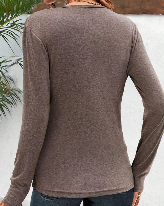 Valentina - Elegant Autumn Blouse in Deep Brown with V-Neck and Long Sleeves for Women