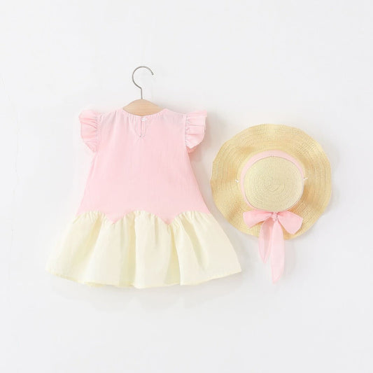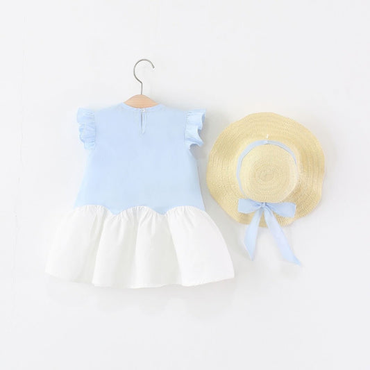 Ruffle cherry two tone dress with hat