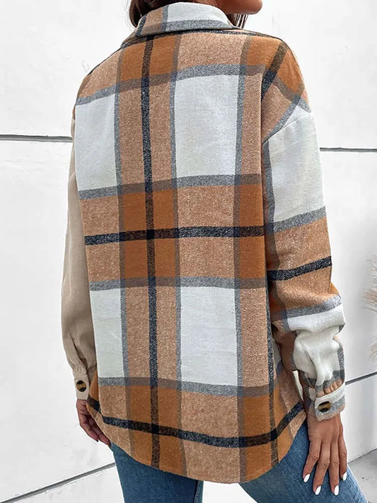 Marleen - Elegant and Comfortable Beige Blouse with Gorgeous Plaid Print for Women