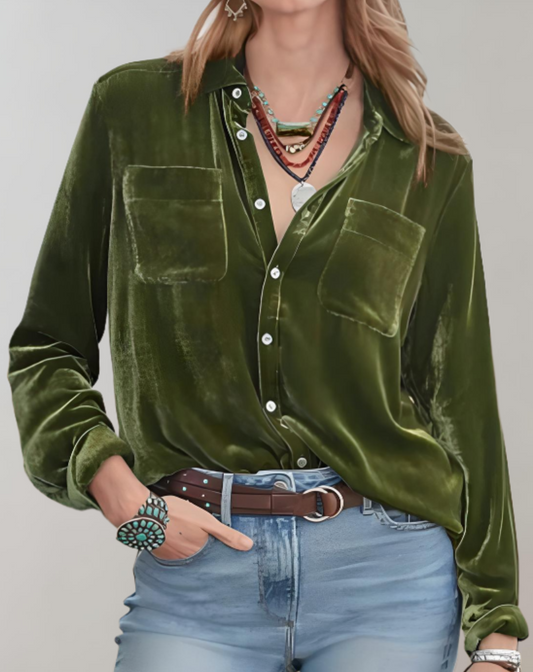 Sienna - Elegant Vintage Velvet Top with Buttons for a Stylish Autumn for Women