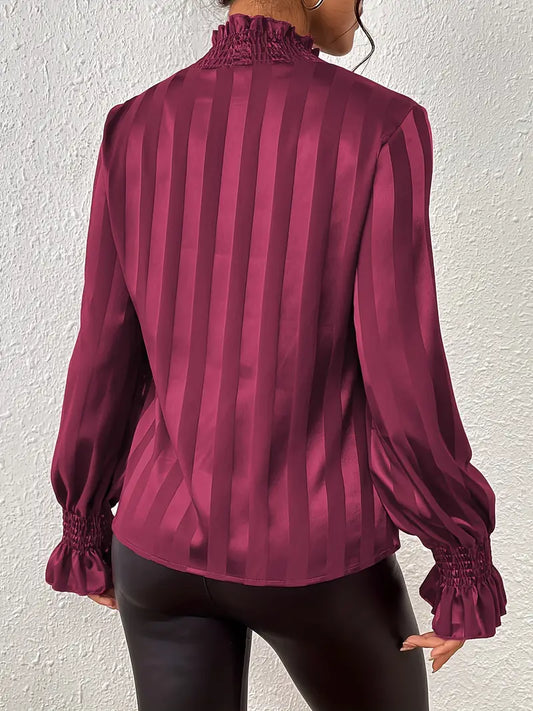 Camila - Elegant Autumn Chic Blouse with Raffled Details and Round Neckline for Women